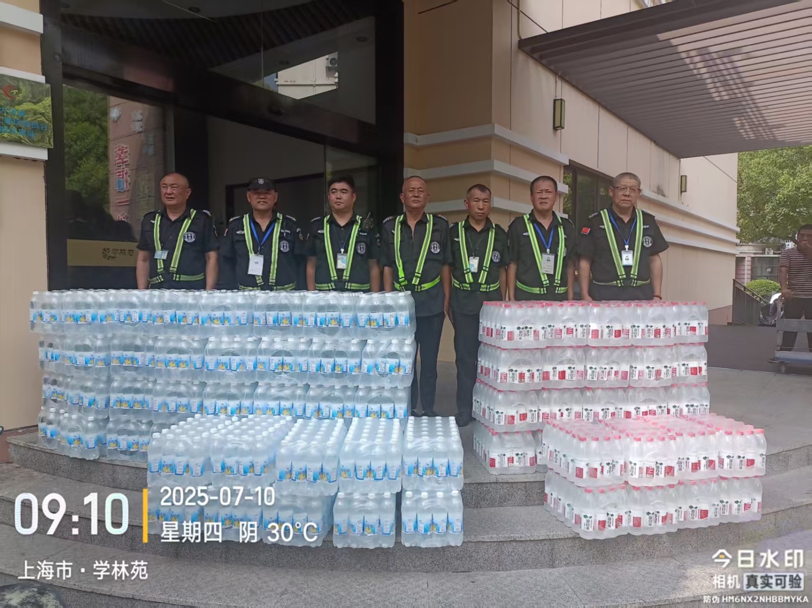 七月流火,热气灼人。振豪公司管理人员拎着装满藿香正气水、风油精和清凉贴的箱子,穿梭于各驻点。两天内,他们顶着烈日跑遍上百家单位,衬衫湿了又干,后背结着盐渍,没人喊累。听到队员那句“谢谢公司惦记”,所有的燥热和疲惫都化作了心头的踏实——这份双向的惦念,让高温天里的坚守更有力量。