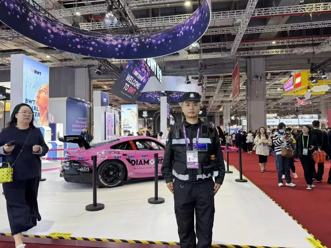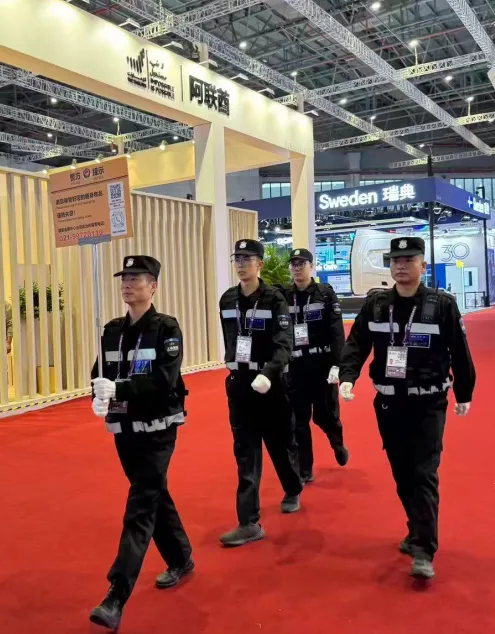 针对进博会人流密集、展品贵重、国际友人众多的特点,队员们展现出极强的应急处置能力。展会期间曾突发小规模人流拥堵,现场队员立即启动疏导预案,通过分区引导、单向通行等方式快速缓解拥堵,全程秩序井然;面对外籍宾客的语言沟通需求,掌握基础英语、日语等语种的队员及时提供翻译协助,获得一致好评。这些细节背后,是振豪保安对 “专业” 二字的极致追求,更是公司多年来深耕安保行业积累的实力沉淀